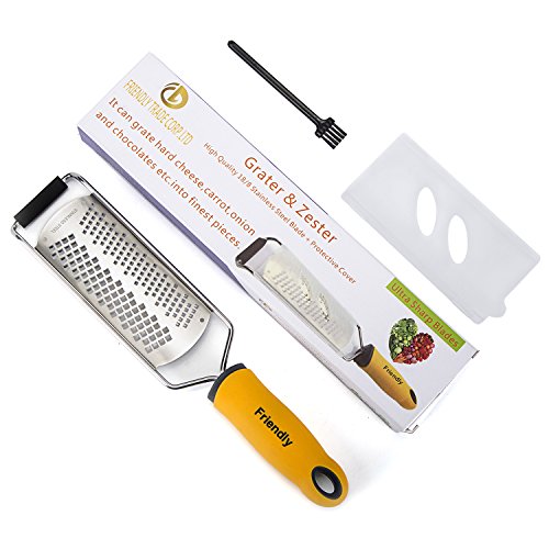 FRIENDLY Stainless Steel Zester/Grater with 2 Sizes of Grating Options for Cheese Lemon Citrus Carrot Ginger etc