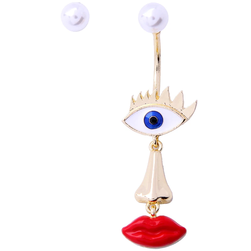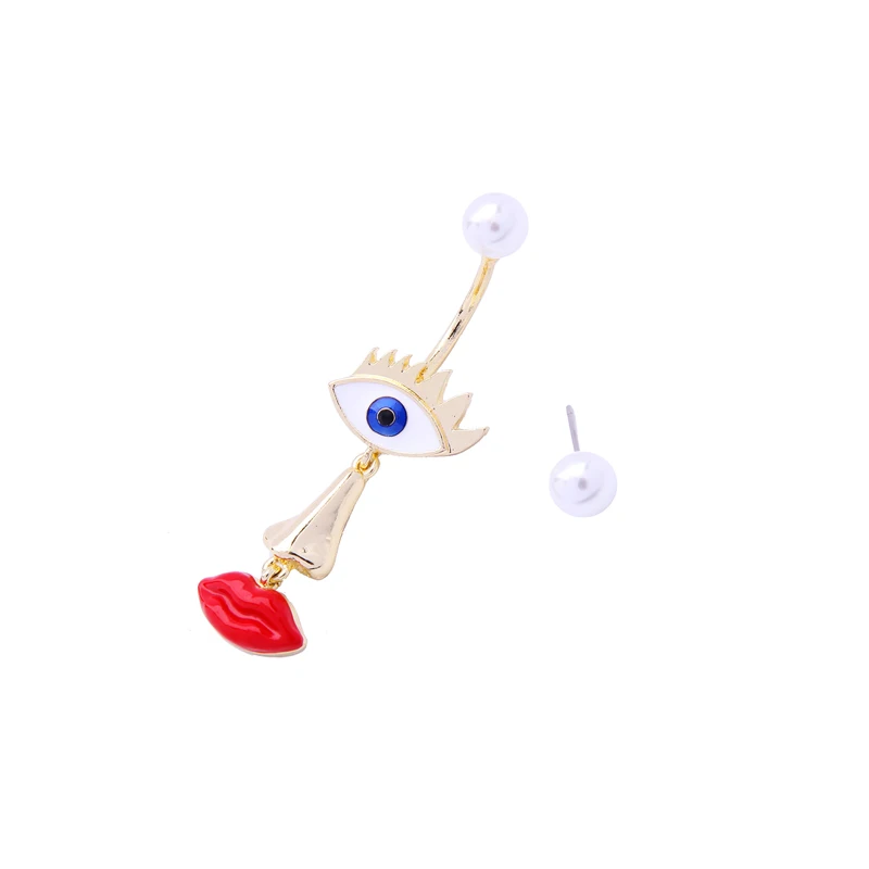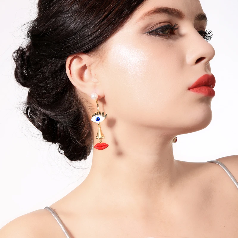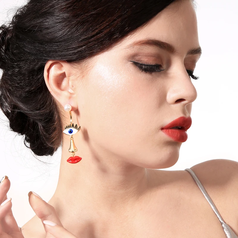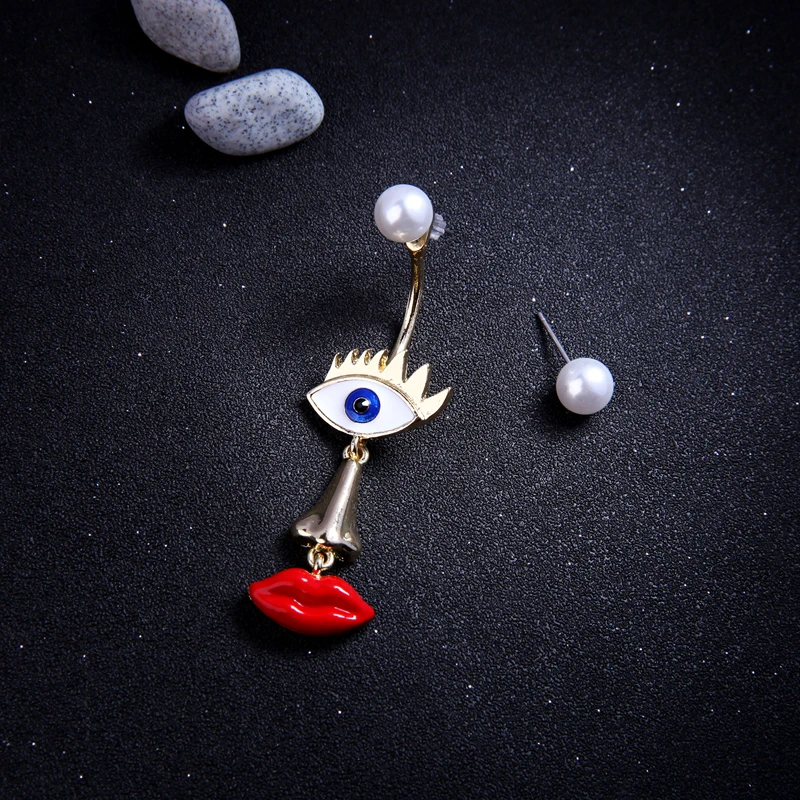 Item type: Face Blue Enamel Evil Eye Nose Red Mouth Simulated Pearl Earrings