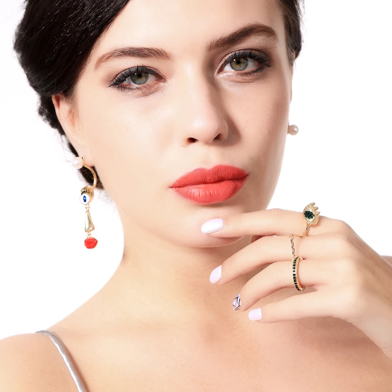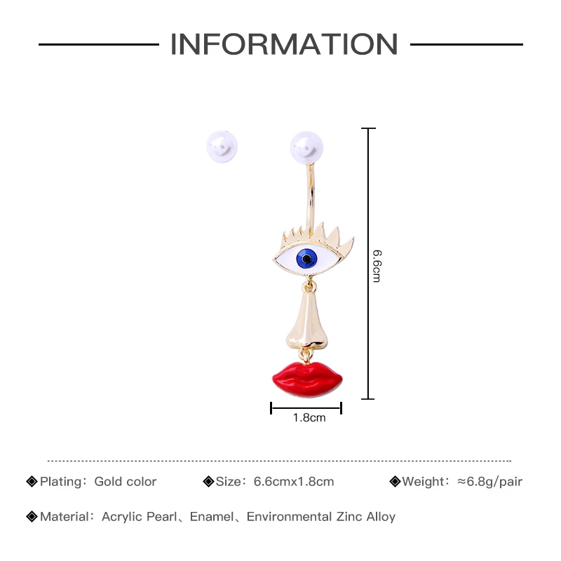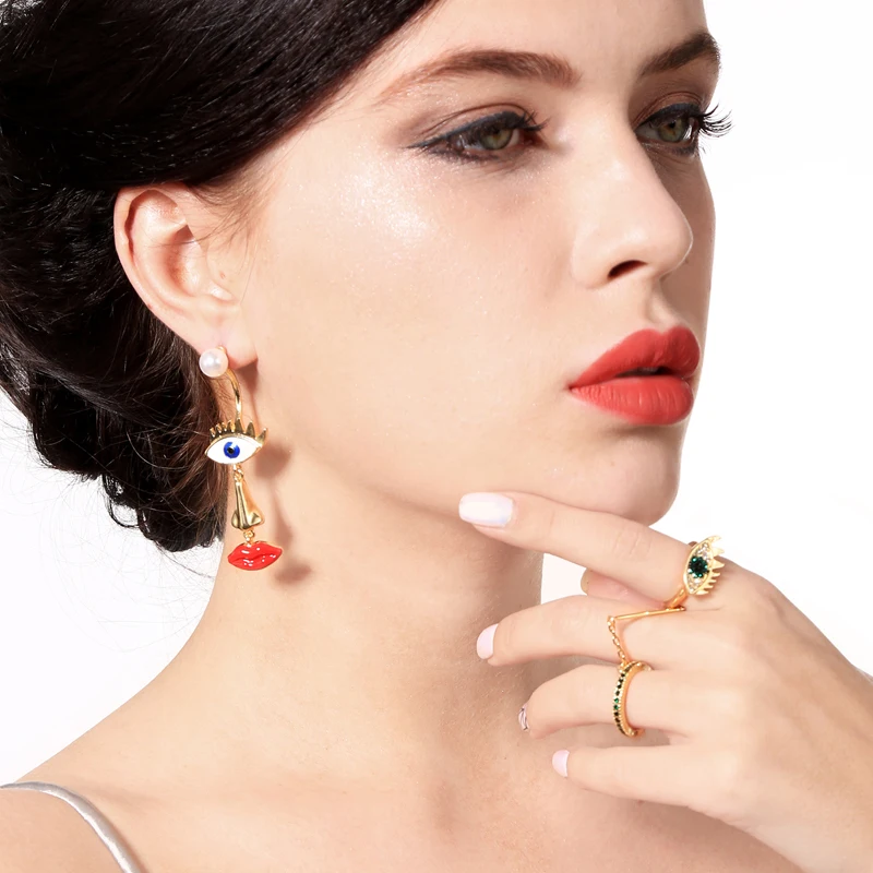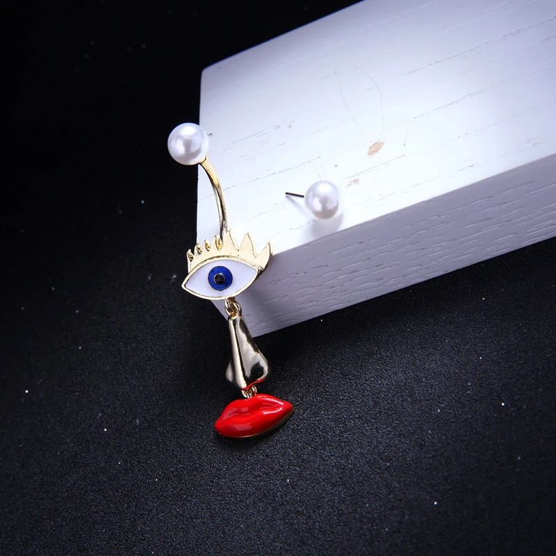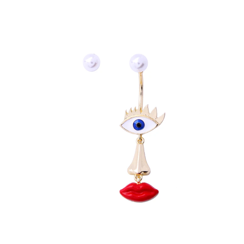 Item type: Face Blue Enamel Evil Eye Nose Red Mouth Simulated Pearl Earrings