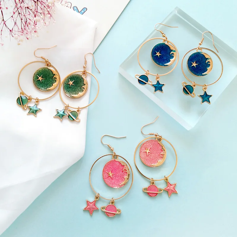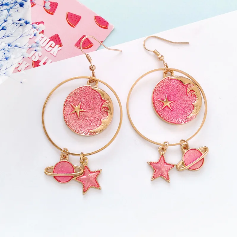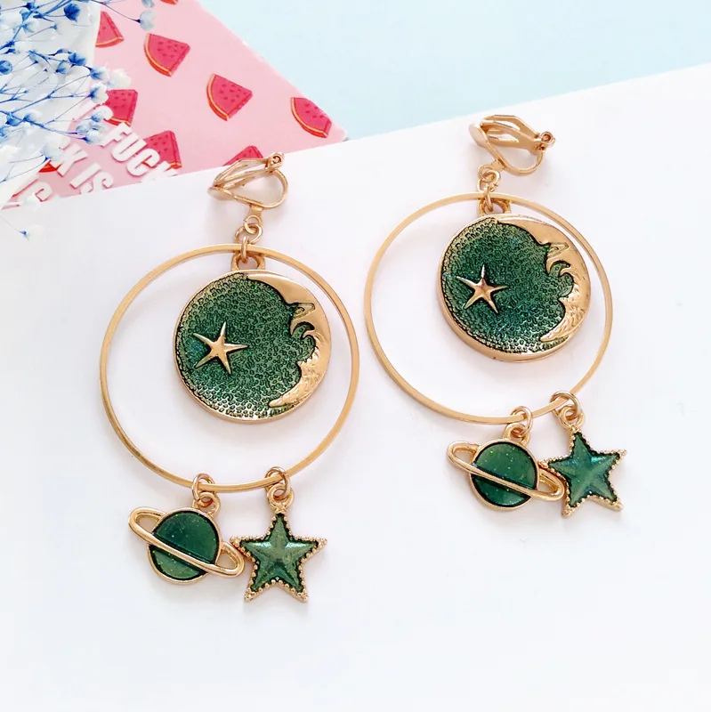 Pedant shape:Korean Cute Pink Moon Star Clip Earrings No Pierced