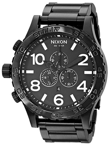 ReleaseDate : 2012-01-27 Studio : NIXON Publisher : NIXON Binding : Watch Product Description This stylish timepiece by nixon for men offers a stainless steel case and stainless steel strap. The watch features a black dial, a date display, quartz movement water-resistant to 300 meters (984 feet). 0