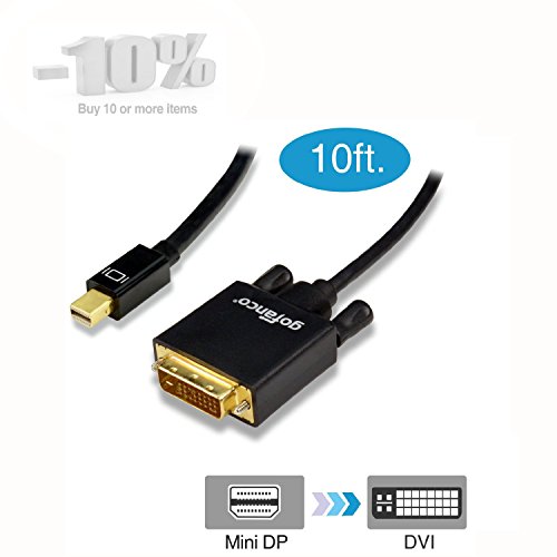 gofanco® 10ft Mini DisplayPort to DVI Adapter Cable connects Mini DisplayPort compatible devices such as Apple MacBooks, and Microsoft Surface tablets, Ultrabooks and laptops with a Mini DisplayPort output to DVI equipped monitors, displays and HDTVs. It can support displays of up to 1080p HDTV or 1920 x 1200 PC graphics and is ideal for your office, home entertainment display, conference rooms, and more.
