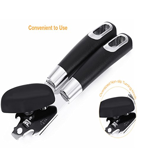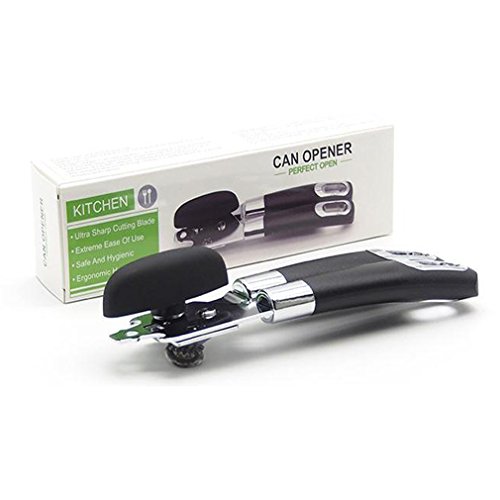 This Side Cutting Safety Can Opener Is Quite Simple To Operate. The Combination Of The Big Knob, Long Ergonomic Silicon Handle, And Sharp Cutting Wheel Makes Opening Cans An Effortless Task, Even For Senior Citizen With Weak Hands From Arthritis And Wrist Problems. A Bottle Opener. Easy To Clean, This Can Opener Makes A Fantastic Present For Any Occasion Such As Weddings, Christmas Gifts,Black Friday,And Housewarming Parties.