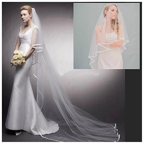Studio : TOOGOO(R) Publisher : TOOGOO(R) Binding : Apparel Product Description * TOOGOO is a registered trademark. ONLY Authorized seller of TOOGOO can sell under TOOGOO listings.Our products will enhance your experience to unparalleled inspiration. TOOGOO(R) 3Meter 2Tiers Bridal Wedding Long Veil Cathedral Satin Edge With Comb, Ivory Color: Ivory Material: tulle with comb Length about 3 Meter Package Included: 1 x 3 Meter Wedding Bridal Veil Note: Light shooting and different displays may cause the color of the item in the picture a little different from the real thing. The measurement allowed error is /- 1-3cm. 0