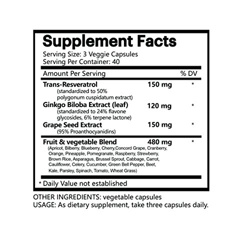 PURITY – With 100% natural, ginkgo biloba extract(with 24%ginkgo flavonol glycosides and 6% ginkgo terpene lactones), standardized to 50% polygonum cuspidatum root extract, 95% grape seed extract, we find you the purest possible ingredients in the market.