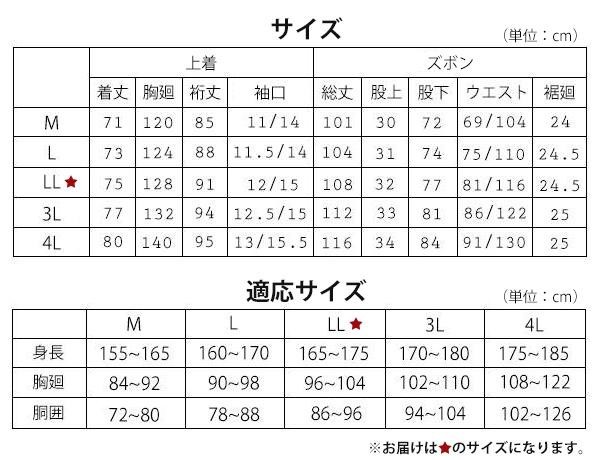 | 仕様 | 上下セット 男女兼用 ポケット付(上着両脇2箇所) 吊り下げフック付(上着のみ) 収納袋付 手洗い推奨 タンブラー乾燥不可 |
