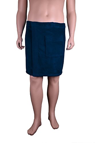 Men's Terry Velour Spa Wrap, 100% Turkish Natural Soft Cotton, Made in TURKEY (Navy)