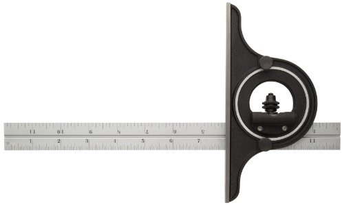 Starrett C12-12-4R Non-Reversible Bevel Protractor With Black Wrinkle Finish, 4R Graduation, 0-180 Degree, 12" Size