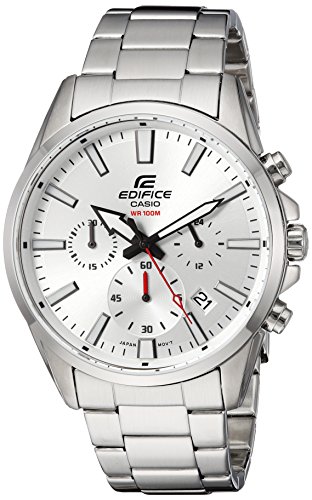 Brand, Seller, or Collection Name:Casio Model number:EFV-510D-7AVCF Part Number:EFV-510D-7AVCF Item Shape:Round Dial window material type:Mineral Display Type:Analog and digital Clasp:Fold-over-clasp Case material:Stainless steel Case diameter:5.1 centimeters Case Thickness:12.1 millimeters Band Material:Stainless steel Band length:Men's Standard Band width:22 millimeters Band Color:Silver Dial color:White Bezel material:Stainless steel Bezel function:Stationary Calendar:Date Item weight:4.80 Ounces Movement:Quartz Water resistant depth:330 Feet
