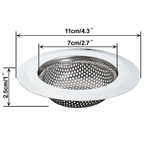 Top Diameter:11cm/4.3Inch, Base Diameter:7cm/2.76Inch, Depth: 2.5cm/1Inch0g/pcs; Package: 2 x Sink Drain Strainer