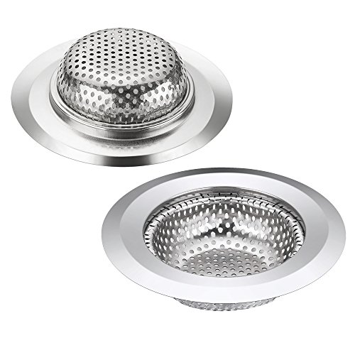 Set of 2 Large Kitchen-sink strainers made of durable stainless steel, Rust-proof stainless steel construction for sink drain strainer which is reliable, Fits to daily utilitarian use for long-lasting protection against clogging
