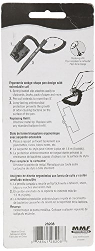 -. Title : MMF Industries Wedgy Anti-Microbial Cord Pens with Clip-on, Blue Ink, Single Pen (28208)