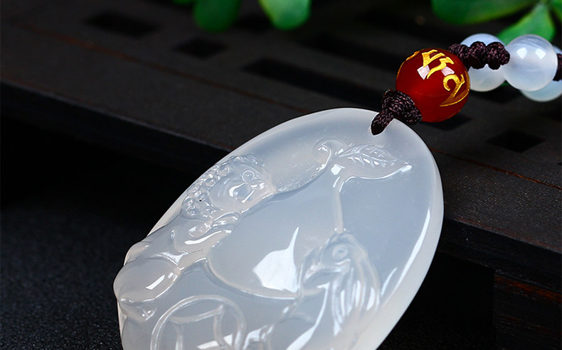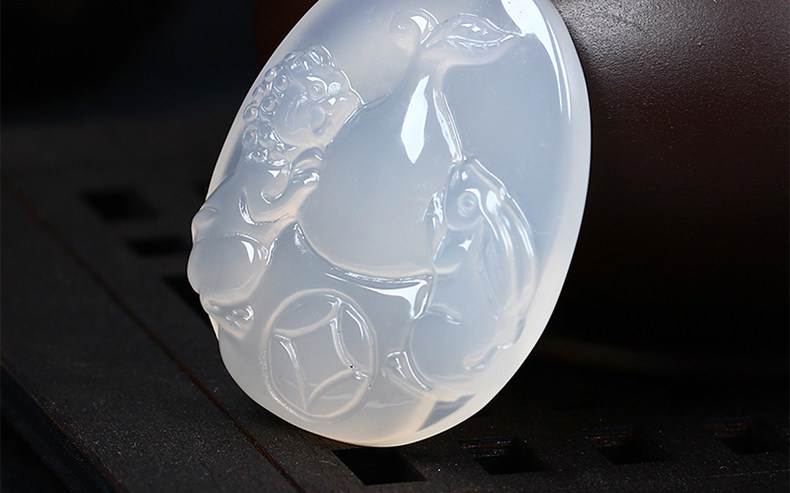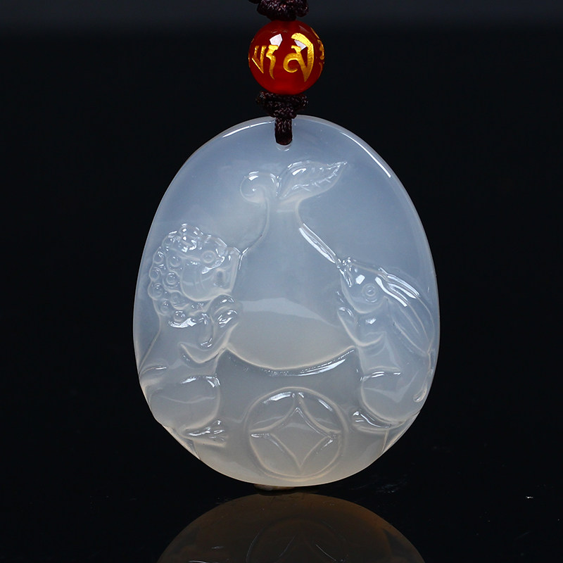开光属狗狮兔送福白玉髓吊坠生肖开运吉祥物男女