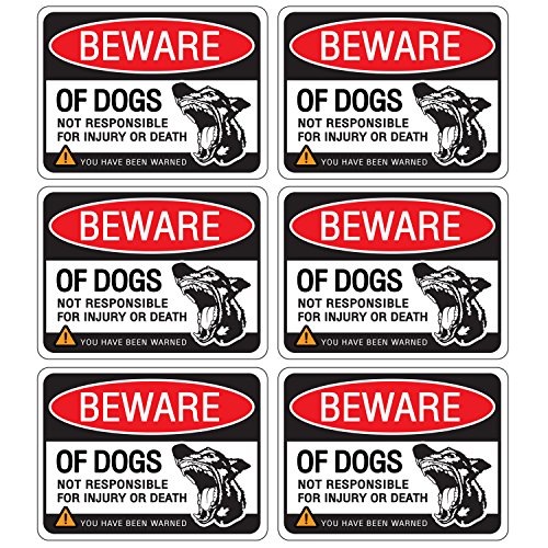 Beware of Dog Sign Stickers for Home and Business, Vinyl Decals, UV Protected & Waterproof, 4 X 3 Inch - 6 Labels