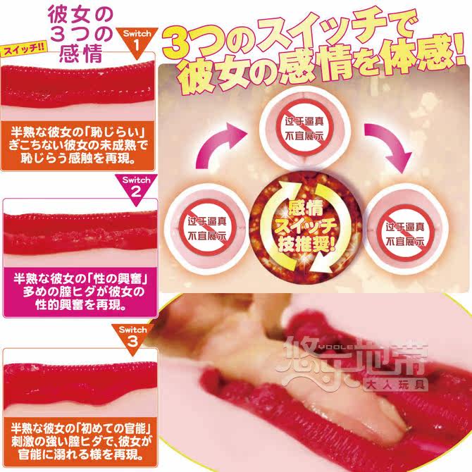满足大人的好奇心!完全还原少女高潮时充血的阴道倒膜。 新着商品「半熟JC」名器是由「Ride Japan」公司出品。半熟JC名器特点: 1、完全没有“异味”的最新硅胶素材,膣内呈现充血红色(2层内壁) 2、外部材质触感柔软、内部材质稍硬,硅胶弹性完全吻合人体皮肤快感需求。和Ride Japan前几作品选用的硅胶物料想对比,半熟JC名器内部稍微,但耐久性、弹力性机能提升。 3、膣口超真实还原少女高潮时内部螺纹,虽没有阴唇制作,但搭载着大颗粒螺旋突起纹路,夹击JJ前段部位,刺激感觉很大。体验榨精最强快感。 |