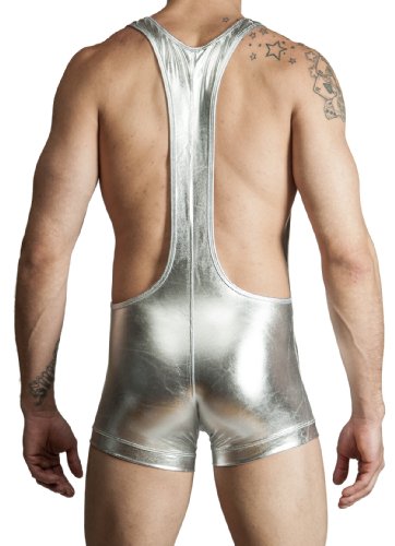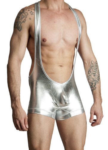 Men's New Sexy Liquid Wrestling Singlet by Gary Majdell Sport Silver Medium