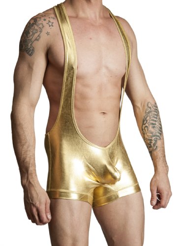 Men's New Sexy Liquid Wrestling Singlet by Gary Majdell Sport Gold X-Large