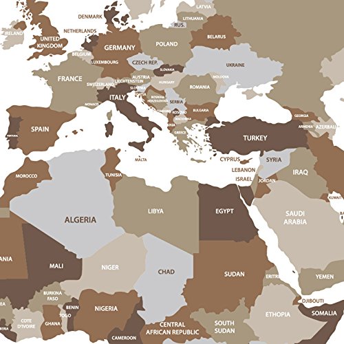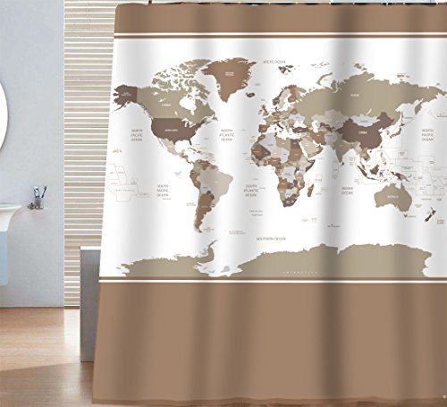 Sunlit Designer New Updated World Map Quality Fabric Shower Curtain with Countries and Ocean 72 x 72 inch- Tan Brown and White