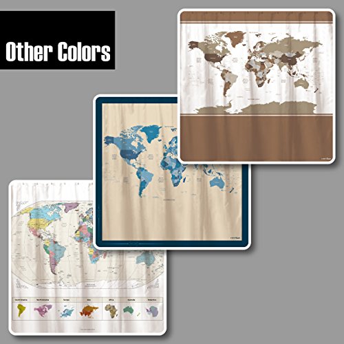 NEW! Map of the World Shower Curtain with Detailed Major Cities. PVC Free, Non-toxic and Odorless Water Repellent Fabric. Large Home Décor. 71'x71' Wall Map.