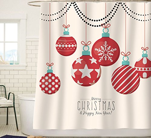 Sunlit Red Holiday Star Ornaments and Snowflake Christmas Ball Christmas Shower Curtain Fabric Decorations Festive Window Curtain Home Decor