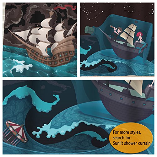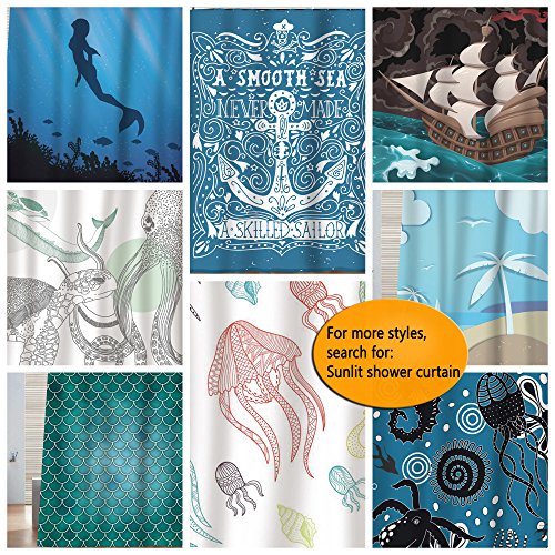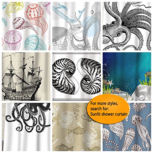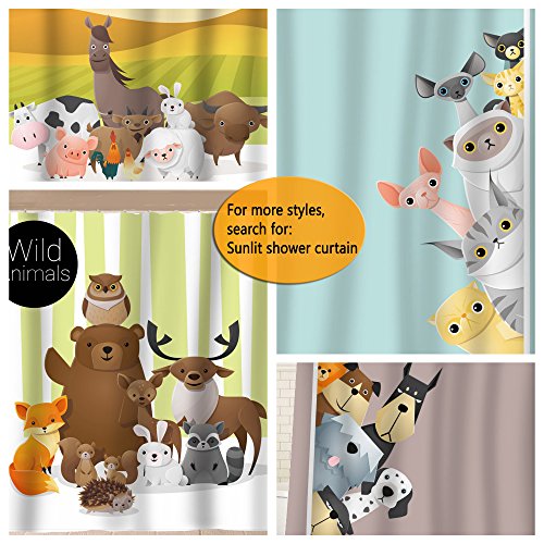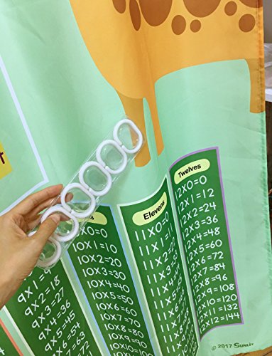 Sunlit Multiplication Chart Shower Curtain Set Green, PVC Free, Non-toxic and Odorless Water Repellent Fabric. Math Tool with Cat Dog Giraffe for Smart Kids.