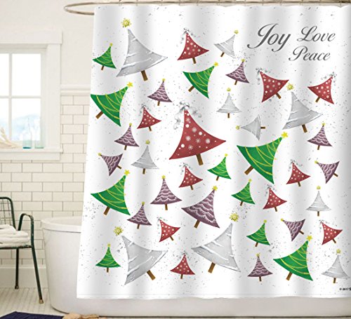 Sunlit Custom Home Decor Christmas Decoration Background Fabric Shower Curtain Red Green Christmas Tree Festive Bathroom Novelty for New Year White Printed Window Curtain