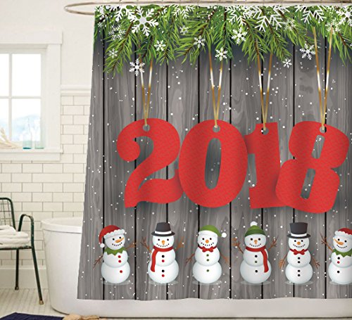 Sunlit Holiday Presents 2018 New Year Decor Festive Christmas Shower Curtain with Christmas Ornaments Snowman Rustic Wood Snowflake Bathroom Decorations