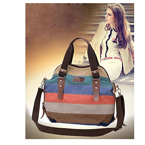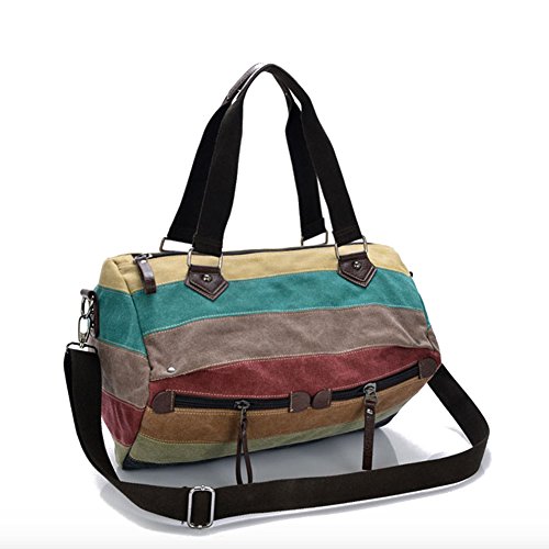 -. Title : Stripe Leisure Canvas Bag Multi-Color Shopper Travel Handbags Large Capacity Tote / Shoulder / Messenger Bag / Shoulder Strap Bag