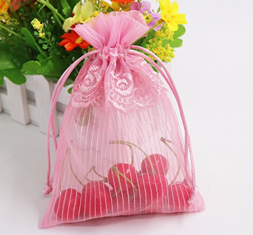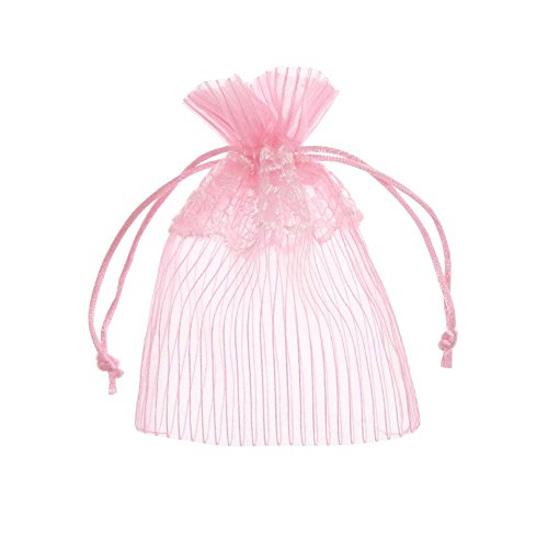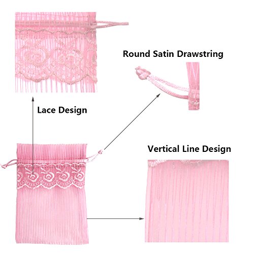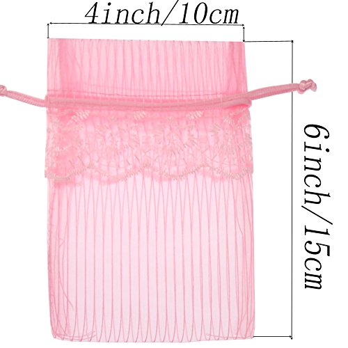 SumDirect 20Pcs 4x6 Inches Pink Lace Organza Gift Bags with Round Drawstring