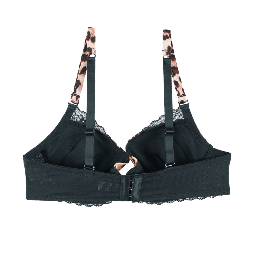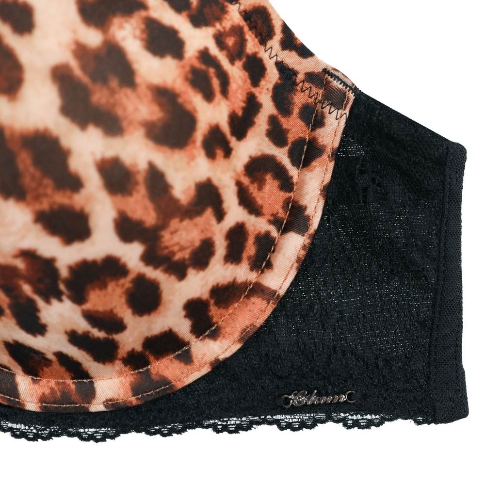 리얼호피나염과 블랙레이스 매치로 섹시한 느낌을 주며 컵전상변 쁘띠레이스 장식으로 과하지않고 YOUNG한 느낌의 호피브라.