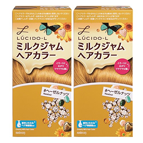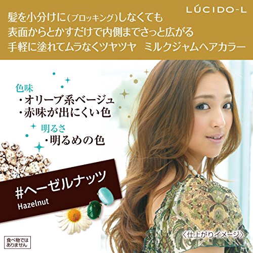 「ルシードエル ミルクジャムヘアカラー ヘーゼルナッツ」は、ミルクジャム剤がとろりとのびて髪にぴったり密着するヘアカラー(おしゃれ染め) 女性用です。髪の表面だけでなく、内側の髪までなじんで密着するから、ムラなくキレイに染まります。髪全体になじむから、短時間で塗布でき、ブロッキングしなくても内側の髪まで浸透。※1箱でセミロング(肩くらいの長さ)まで使用可
