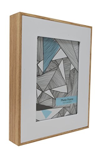 8x10 White/Natural 3D Picture Frame - Made to Fit 5x7 Inch Photo - Freestanding or Wall Mountable