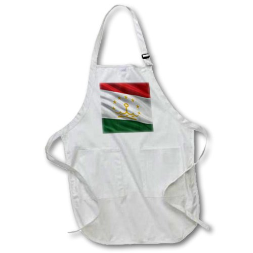 3dRose apr_174736_2 Flag of Tajikistan Waving in The Wind-Medium Length Apron with Pouch Pockets, 22 by 24-Inch
