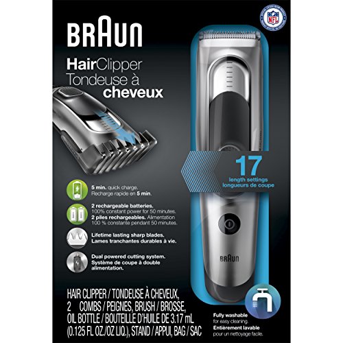 -. Binding : Health and Beauty -. Brand : Braun -. EAN : 0069055874011 -. Feature : 17 length settings: 2 smart trimming attachments lets you customize a variety of hair styles in up to 16 lengths. Plus an extra short length setting when used without a comb / Lifetime lasting sharp blades for the perfect haircut / Powerful Dual Battery provides constant power for perfectly even hair clipping / Memory Safety Lock system conveniently locks and memorizes the last used setting / Fully washable for easy cleaning under running water -. IsAdultProduct : 0 -. Label : Braun -. Manufacturer : Braun -. Model : HC5090 -. MPN : 69055874011 -. NumberOfItems : 1 -. PackageQuantity : 1 -. PartNumber : 69055874011 -. ProductGroup : Beauty -. ProductTypeName : BEAUTY -. PublicationDate : 2016-01-31 -. Publisher : Braun -. ReleaseDate : 2016-01-28 -. Studio : Braun -. Title : Braun HC5090 Hair Clipper and Trimmer for Men, Cordless & Rechargeable Electric Cutting Machine for Facial Hair -. UPC : 069055874011