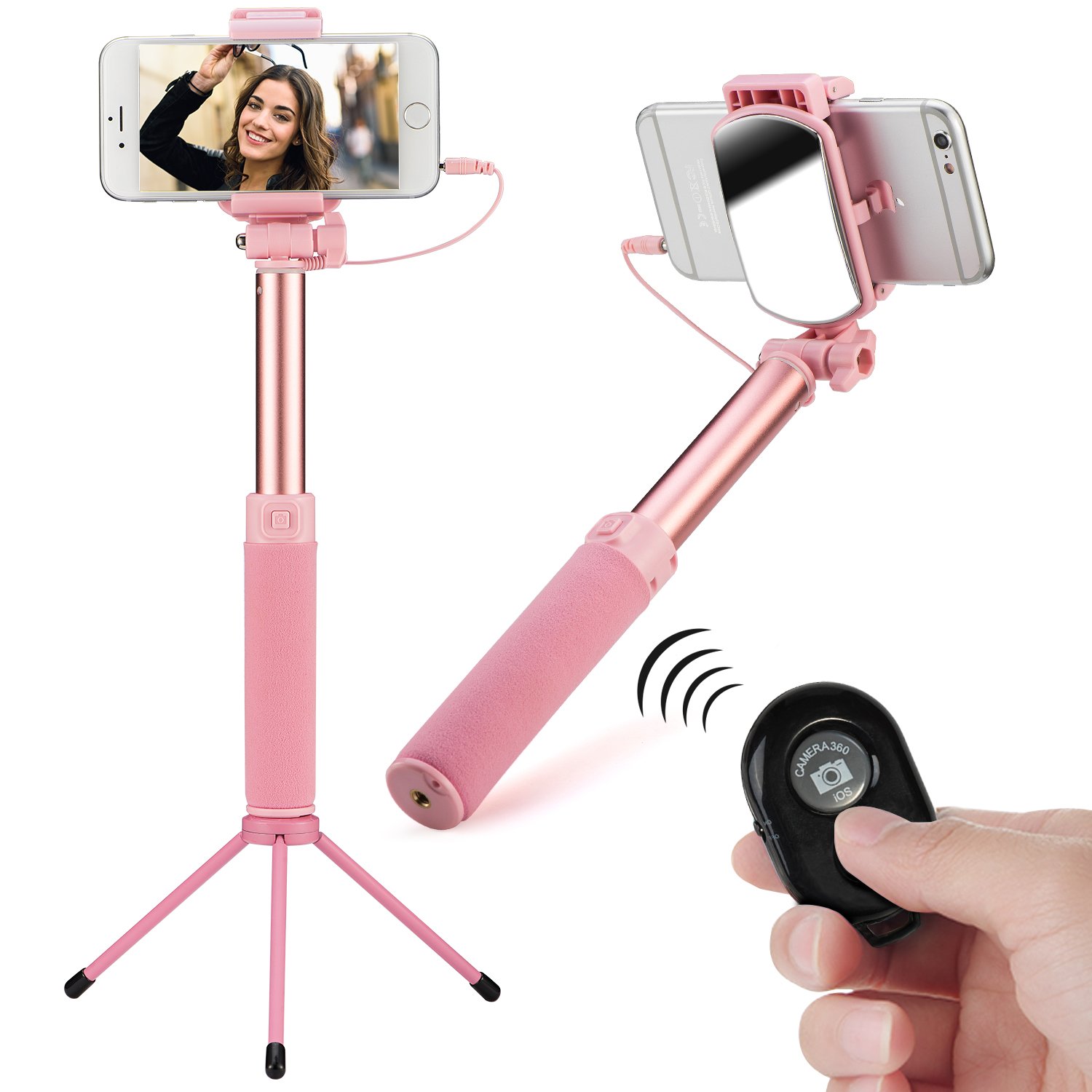 It is a compact integrated self-shooting stick, 25 cm, easy to put in your pocket, you can carry it anywhere.