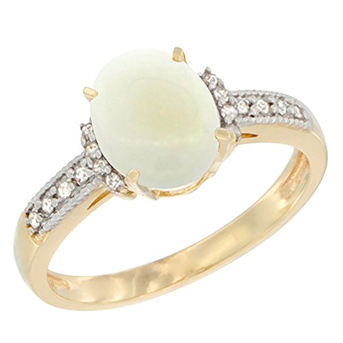-. Title : 14K White Gold Natural Opal Ring Oval 9x7 mm Diamond Accent, sizes 5 - 10
