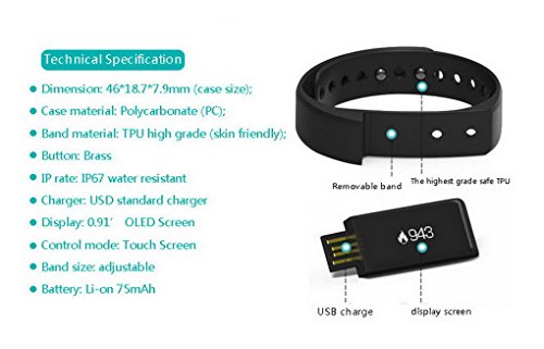 -. Feature : Notice : Because of Firmware update ,if your product can't connect or Sync , Please Install "Zeroner Health" in Apple Store or Google Play. / Many functions: with OLED screen, show the steps, Calorie, Walking distance and sleep quality clearly. A considerated Health Guardian,Time/Date Display, Reminder, Step Count, Touch control, Alarm, Sedentary Alarm, Sleep Monitor, GPS Sport Record, Easy Camera(Remote Capture), Find your phone. / IP67 water resistant grade: You can wear bracelet to swim, it won't missed any important message or calls; Ultra-light weight; Super thin (8.6mm); Adjustable snap strap design to fit your wrist. / User friendly design: host comes with a standard USB port, easy to get charged through PC or mobile driver. / Fit For: iPhone 4S or above (iPhone 6 ,iPhone 6S Plus ,iphone 4, iphone 5, iphone 5S, iphone 5C, iTouch5, ipad3, ipad4, ipad air, ipad mini etc IOS 7.0 or above system) Android 4.3 or above, Bluetooth 4.0.