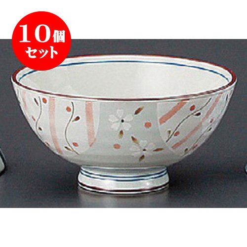 원본상품명: 10個セット 飯碗(磁器) 古染間取花 赤中平茶碗 [115 x 55mm] 和食器 料亭 旅館 ?食店 業務用