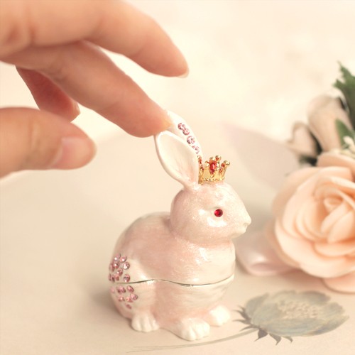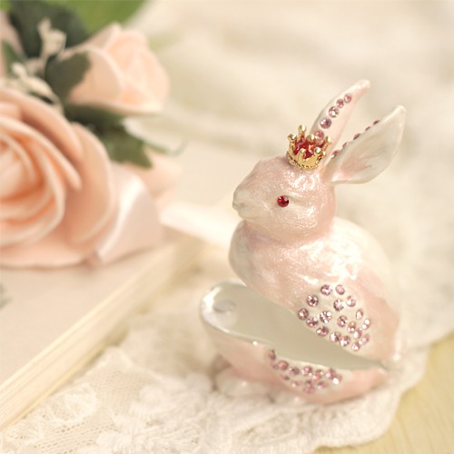 | ジュエリーボックスと言えば、指輪やピアス、ネックレスなどのアクセサリーを入れる引き出し型のケースを思い浮かべる方が多いかもしれません。 ピィアースのジュエリーボックスは、動物や花などをモチーフに作られ、合金製でずっしりとした重さがあります。また高品質のクリスタルガラスを贅沢に使用。まるでジュエリーボックスそのものが宝石のような、高級感溢れる仕上がりです。 小物入れとしても使えるように開閉口には磁石が取り付けてあり、アクセサリーなどなくしやすいアイテムの収納ができます。キラキラと美しく輝く宝石箱は、そのまま飾って楽しめるインテリア雑貨として多くの方に愛されています。 国内トップクラスのジュエリーボックスメーカーであるピィアースは、2004年ごろから本格的に宝石箱の製造を始め、現在のジュエリーボックスはなんと300種類以上。大規模展示会でもご好評いただいており、全国有名百貨店でも販売されています。 自社工場でひとつひとつ丁寧に手作りし、原型作成、研磨、加工、着色、小さなクリスタルガラスの取り付けなども全て手作業で行われるこだわりのハンドメイド品。完成後は厳しい検品の後、丁寧に梱包作業をしお客様にお届けしております。 ピィアース商品は、全国有名百貨店および全国有名宝石店チェーンにてお取り扱いいただいている高品質商品です。 ★自分へのご褒美に…コレクションして並べて飾ると、さらにかわいらしさUP! ★恋人へのプレゼント…中にアクセサリーを入れて、サプライズな贈り物として ★家族への感謝ギフト…お母さんや姉妹へ、日頃のありがとうの気持ちを込めて ★誕生日プレゼント…お友達の喜ぶ顔が見たいから、いつもと違うキラキラギフトを ★小さな女の子へ…まるでお姫様が使っているようなキラキラ宝石箱は女の子の憧れ! |