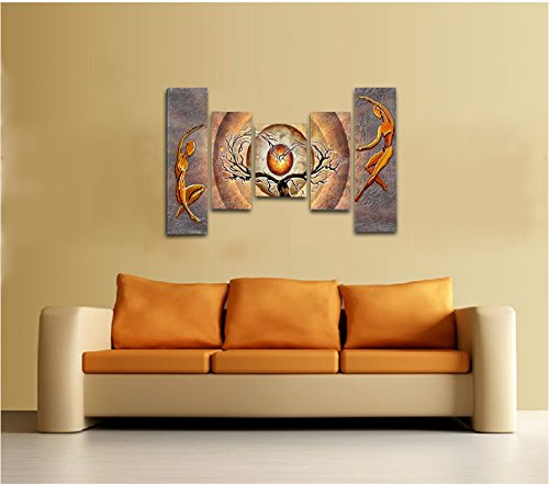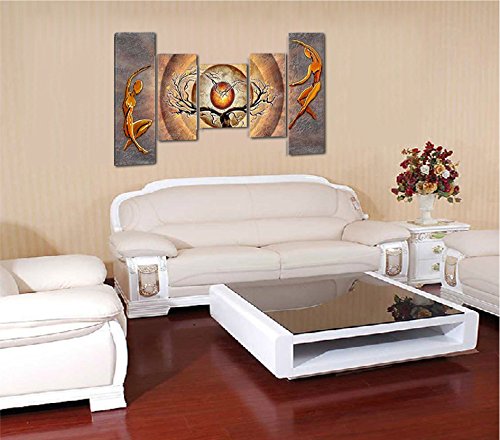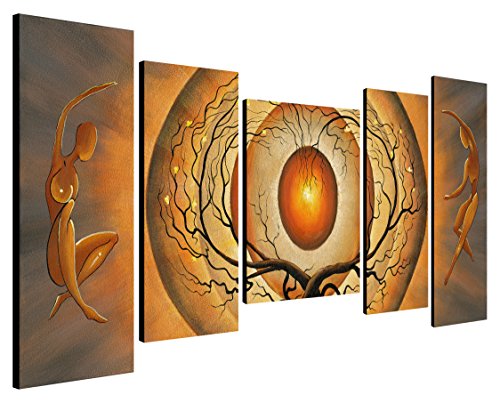 -. Title : Wieco Art - Orange Trees Dancing 5 Panels Modern Stretched and Framed Abstract Landscape Paintings Artwork on Canvas Wall Art Ready to Hang for Living Room Bedroom Home Decorations