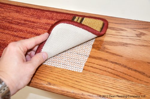 - Feature : Perfect for installing Dean Flooring Company Brand Carpet Stair Treads. / Non-slip alternative to rug pads or double-sided tape. / Roll is 8" x 40' (enough to do a full set of 13 stair treads up to 36" wide. / Great for installing carpet tile. Cuts easily with scissors. / Non-tox VOC free dry double-sided adhesive mesh. WILL NOT DAMAGE HARDWOOD OR LAMINATE FLOORS.