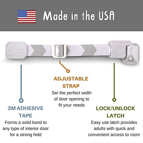 Door Buddy Baby Proof Door Lock with Adjustable Strap. No Need for Baby Gate. Child Proof Room with Litter Box while Cats Enter Easily. Installs in Seconds and is Simple & Convenient to Use. (Grey)