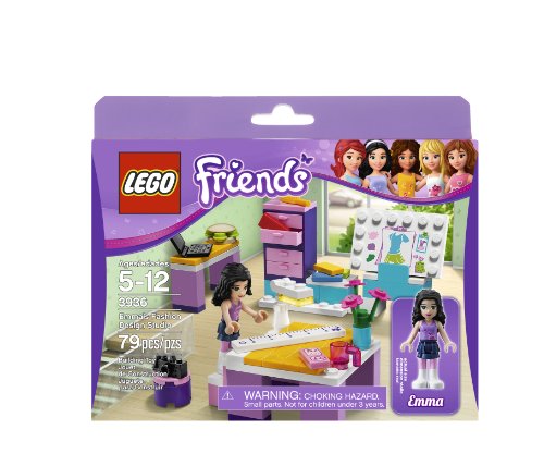 Create cool clothes in Emma's Fashion Design Studio! Emma is dreaming up her next fancy fashion design. Help her to make new stylish designs for all of the LEGO Friends! Use her laptop for inspiration and design table with color samples to create fun fashions. She can take photos of her work with the camera. Crank up the tunes with her mp3 player while she creates! Emma has everything she needs to create trendy new dresses and the coolest clothes for all of her friends to wear. Includes Emma mini-doll figure.
