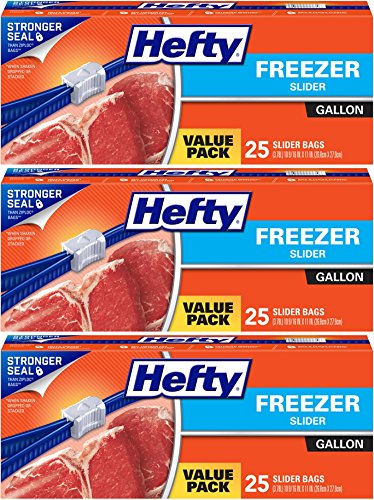Hefty Slider Freezer Bags, Gallon, Value Pack, 25 Count (Pack of 3) 75 Bags Total