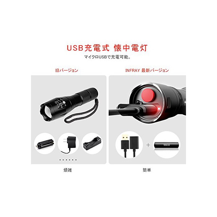 원본상품명: [充電式] INFRAY LED 中電 800 ルメン 超光 / Micro USB で充電できる フラッシュライト (用点120時間 / 12ケ月保付 / 小型 量 / 力