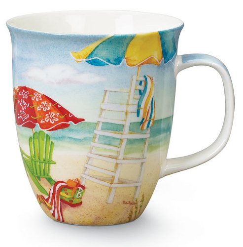 -. Title : Beach Umbrellas & Adirondack Chairs Coffee Latte Mug