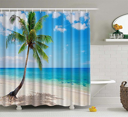 Superior Custom Sea Paradise Beach Seascape Refreshing Summer Palm Tree Coconut Palm Tree Shower Curtain 65" x 72"