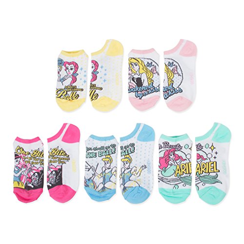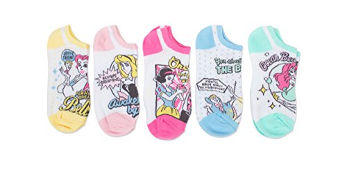 -. Binding : Apparel -. Brand : Disney -. Department : womens -. Feature : Fits Sock Size 9-11; Fits Shoe Size 4-10.5 / Juniors and Ladies Age 9-Adult / 5 Pack No Show Socks / Assorted Disney P.R.Incess theme -. Label : Disney -. Manufacturer : Disney -. NumberOfItems : 5 -. ProductGroup : Apparel -. ProductTypeName : SOCKSHOSIERY -. Publisher : Disney -. Studio : Disney -. Title : Disney Women's P.R.Incess 5 Pack No Show Socks
