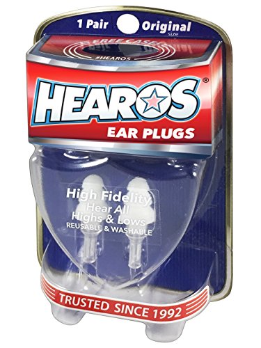 -. Feature : Musician's favorite ear plug - hear all the highs and low. / Original size. 1 pair plus the new HEAROS Pop case / Protects up to 20 decibels, NRR is 12 decibels. Ear plugs provide flat attenuation of sound waves / Reusable, washable plus comes with free case. Keep your HEAROS close at concerts and jam sessions / Super soft, triple flange design with tuned resonator
