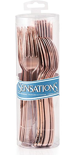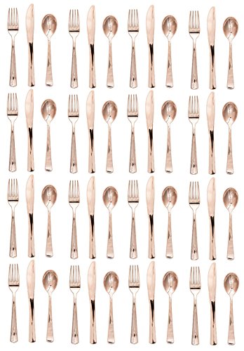 Metallic Plastic Assorted Cutlery, Rose Gold 48 count Heavyweight Plastic Forks Knives Spoons